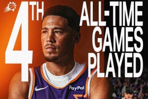 此役,布克首發(fā)。據統(tǒng)計,這是布克太陽生涯第686場比賽,超越迪克·阿斯代爾(685),升至隊史第4多。