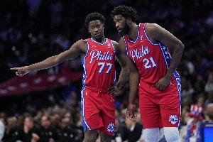 賽前76人公布了本場首發(fā):馬克西、埃奇庫姆、烏布雷、沃特福德、恩比德。