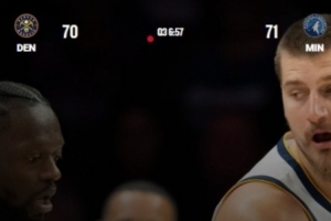 掘金客場123-112力克森林狼,比賽已經(jīng)結(jié)束一個半小時,官網(wǎng)數(shù)據(jù)仍然停留在第三節(jié)。