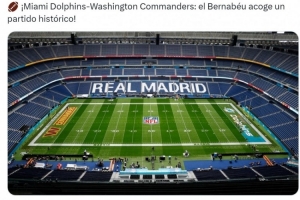 皇馬官方社媒曬出伯納烏球場準備就緒的照片,配文:“邁阿密海豚vs華盛頓指揮官,伯納烏球場將迎來一場歷史性的比賽?!?/p>