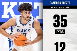 體育資訊11月17日訊 在此前的一場NCAA比賽中,杜克大學100-62大勝印第安納州立大學??仿 げ紳蔂柨窨?5分12籃板5助攻3搶斷3蓋帽。而這僅僅是他代表杜克打的第四場正式比賽。