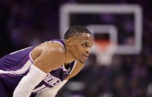 上半場(chǎng)比賽,威少攻防兩端依然拼盡全力,投籃手感不佳就沖筐造殺傷,防守端預(yù)判搶斷,就是失誤有些多。