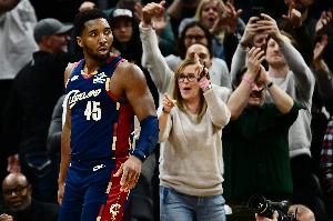 騎士主將米切爾上半場表現(xiàn)神勇,在球隊開局表現(xiàn)不佳的情況下,他幫助球隊緊咬比分,第二節(jié)又延續(xù)狀態(tài)帶領(lǐng)球隊完成反超。